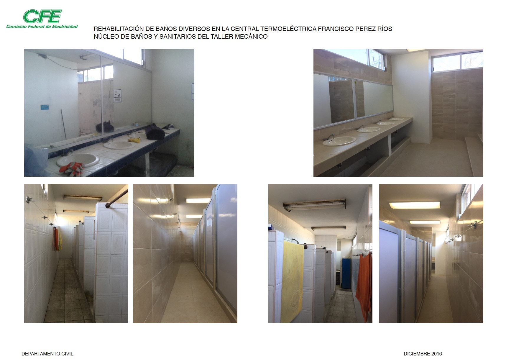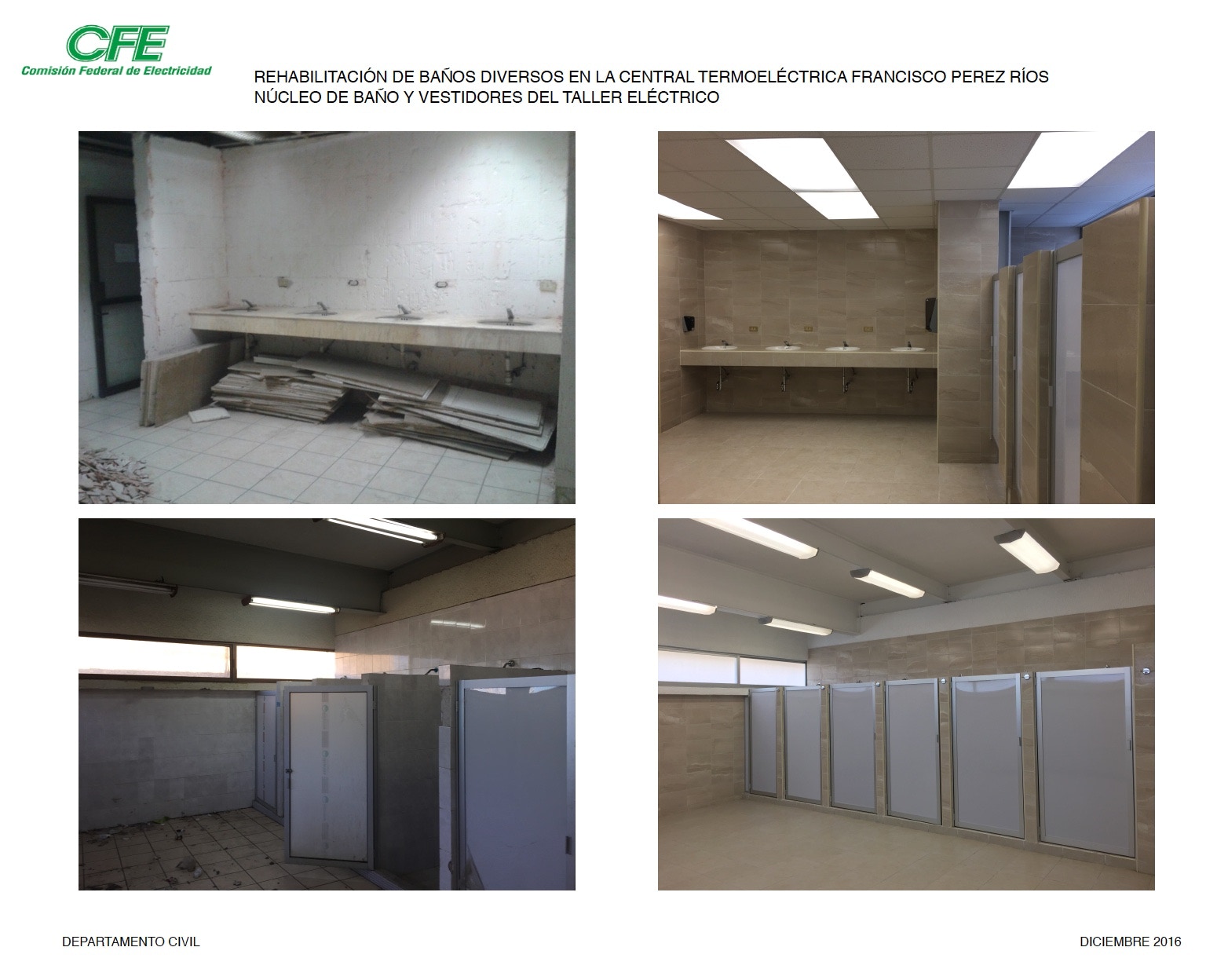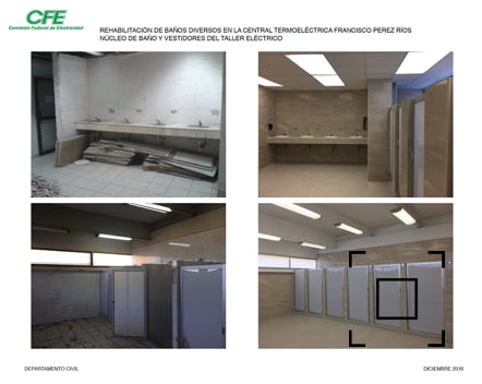Proyecto Arquitectónico y Obra de Remodelación de Baños de la Central Termoeléctrica de Villa de Reyes en San Luis PotosÃ
